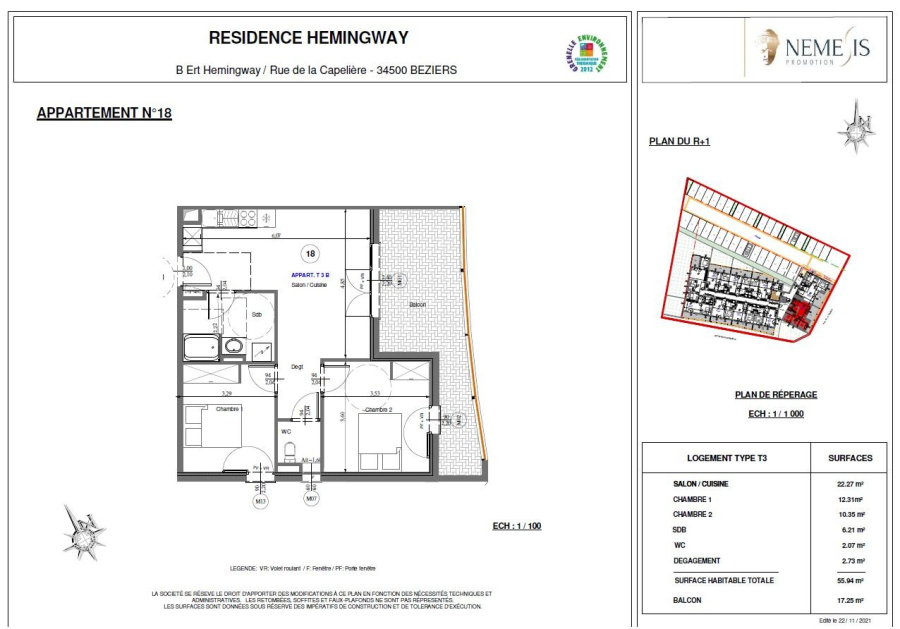 Appartement 3 pièce(s) 2 chambre(s) 55.94 m²