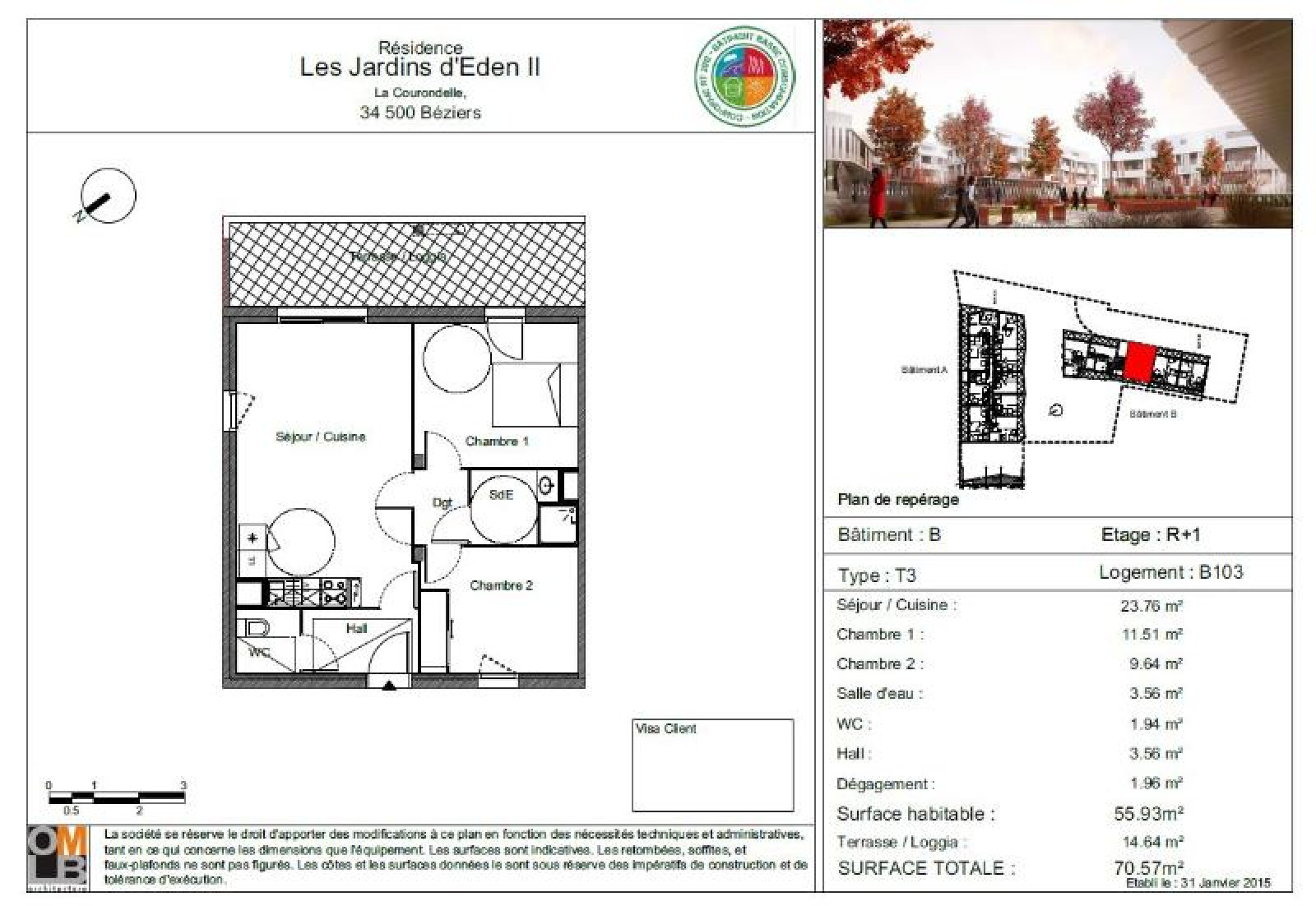 Appartement 3 pièce(s) 2 chambre(s) 55.93 m²