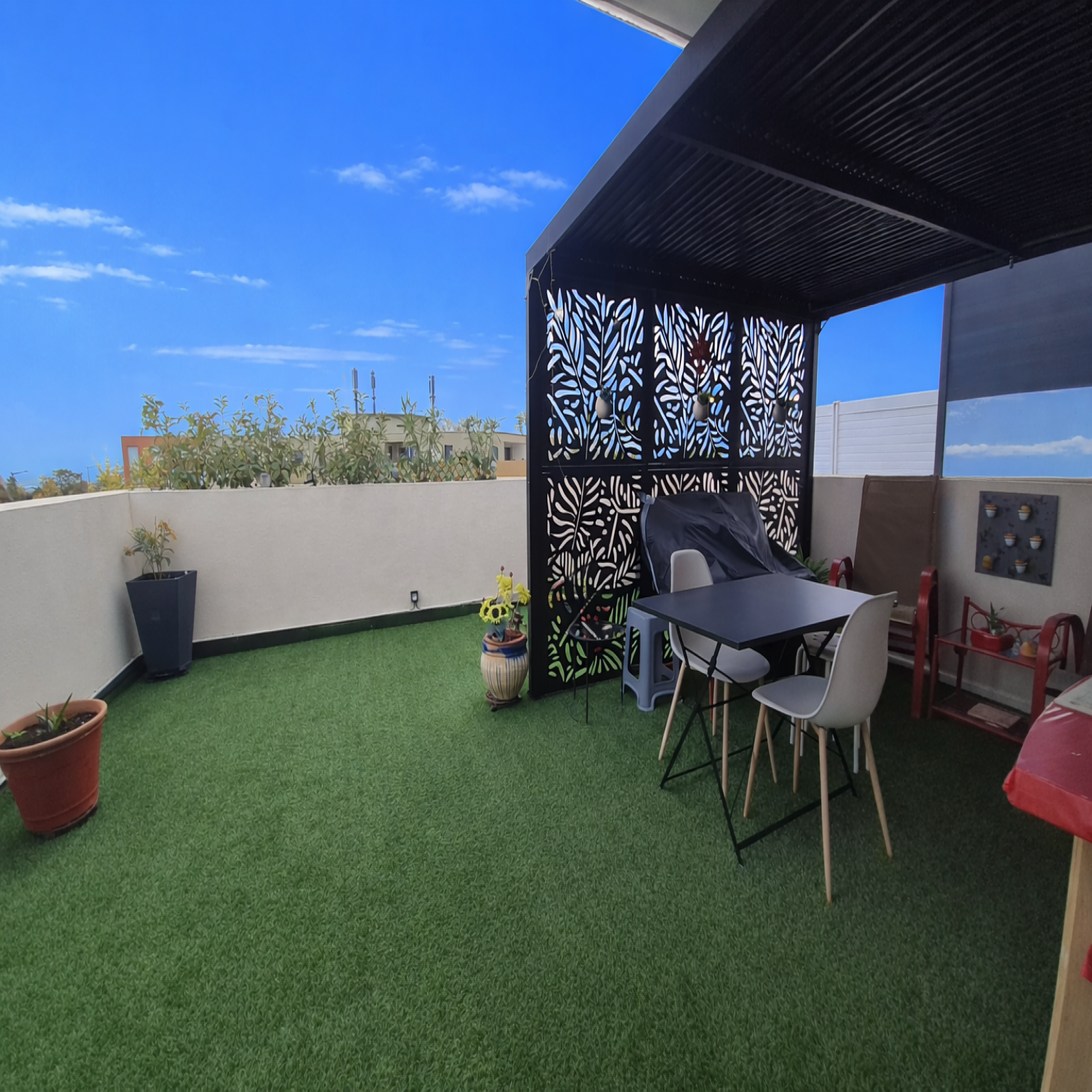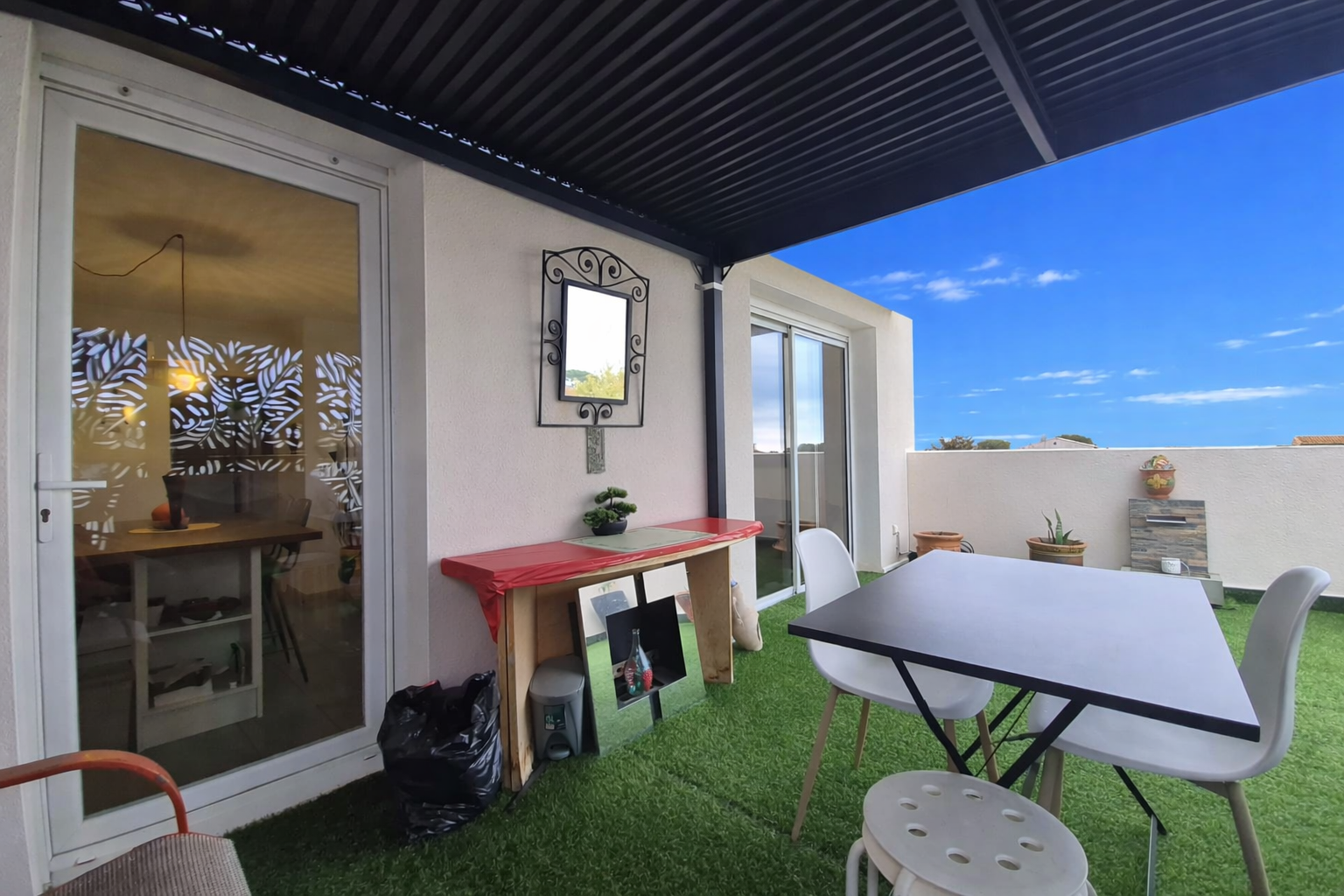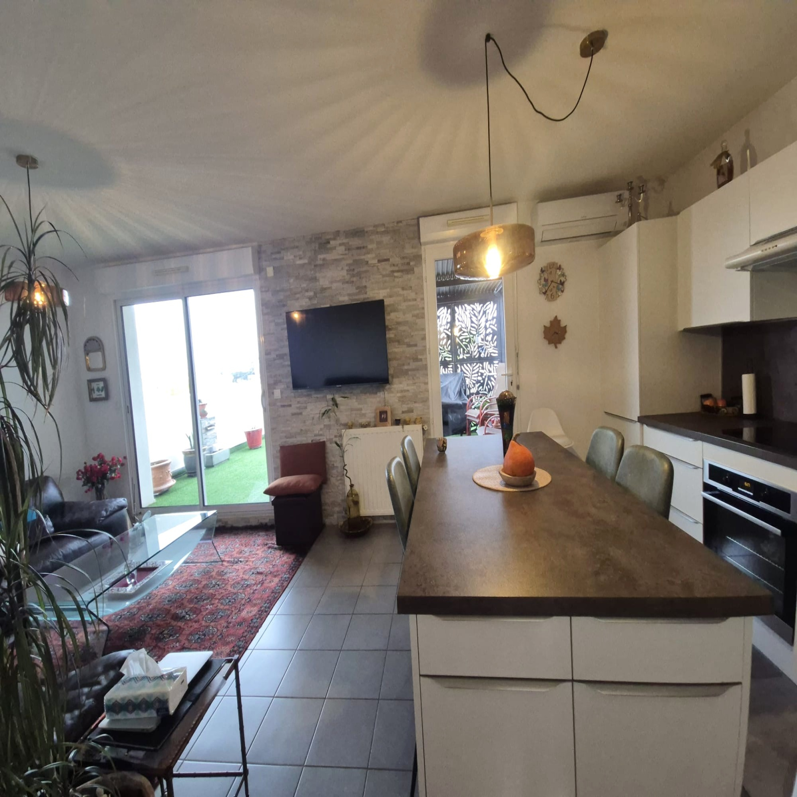 L’espace de vie, baigné de lumière grâce à son exposition sud-ouest, s’ouvre sur une splendide terrasse de 30,51 m², idéale pour profiter du soleil, partager des repas en extérieur ou simplement se détendre en toute tranquillité.