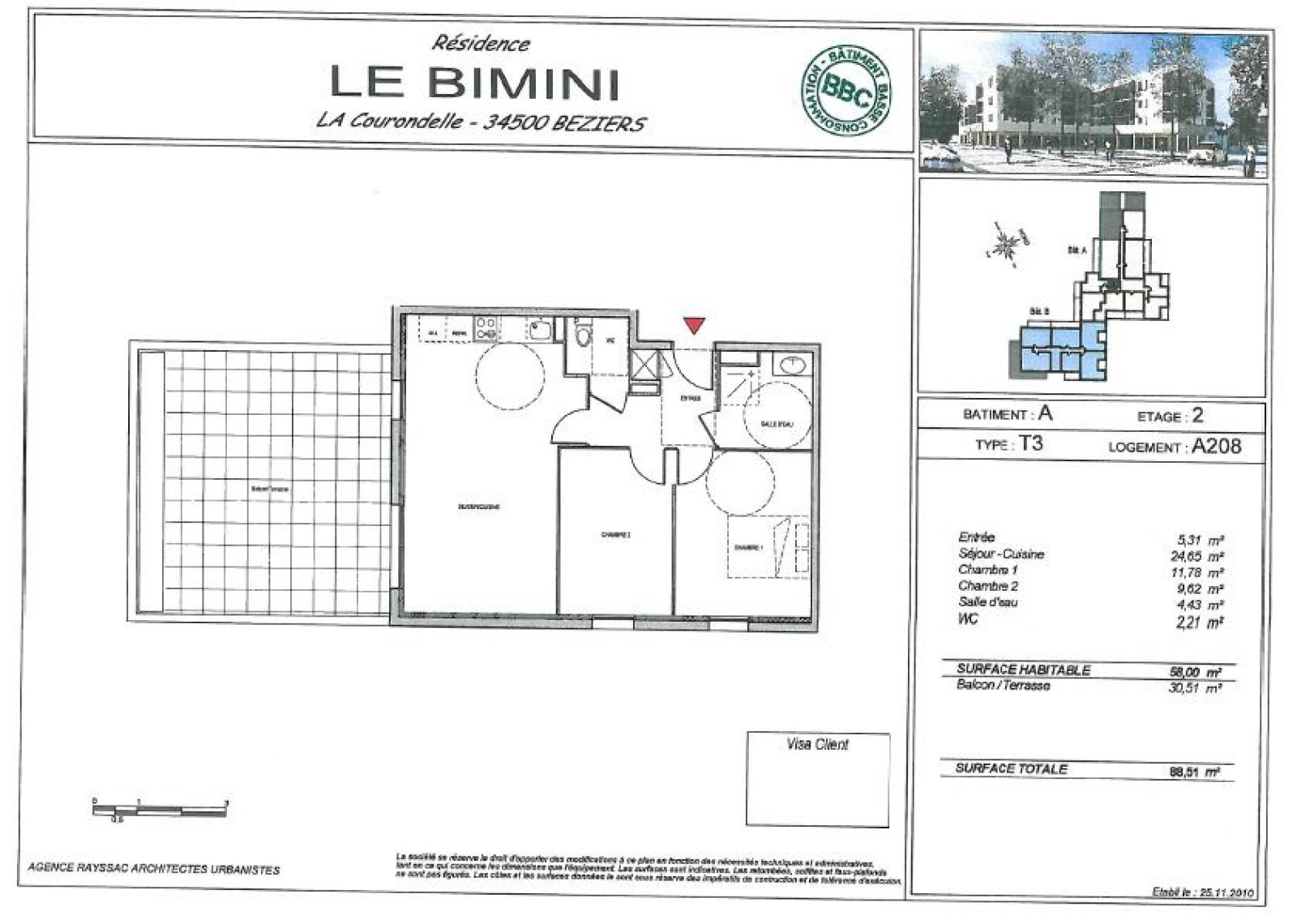 CL CONSEILS By La Toile Immobilière vous présente en exclusivité ce superbe appartement T3 de 58 m², situé au dernier étage d’une résidence récente et sécurisée, dans le quartier recherché de La Courondelle à Béziers, à proximité immédiate des commerces, écoles et transports.