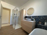 À l’étage, une troisième chambre avec sa salle d’eau attenante vous propose un espace plus intime, idéal pour une suite parentale ou pour accueillir vos invités en toute indépendance.